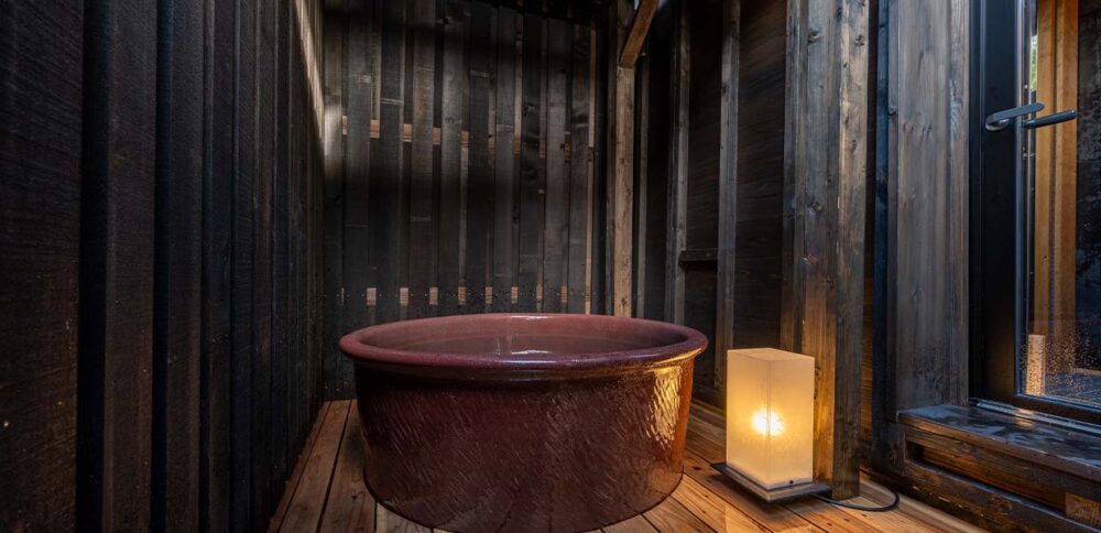 土蔵として漆器が多く格納されていたという歴史を継承し、「黒色の漆」で内装の仕上げをした非日常感を味わえるお部屋。