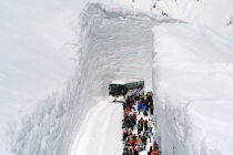 アルペンルートの春の風物詩。大迫力の雪壁を間近で感じることができます。