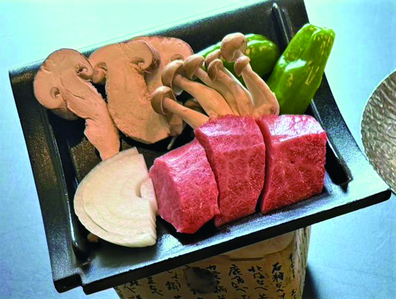 「近江牛ステーキ(約50g)と松茸の瓦焼」に