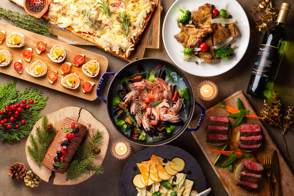 海を目の前に望む開放的な空間で、多種多様なお料理に出会えるダイニング。