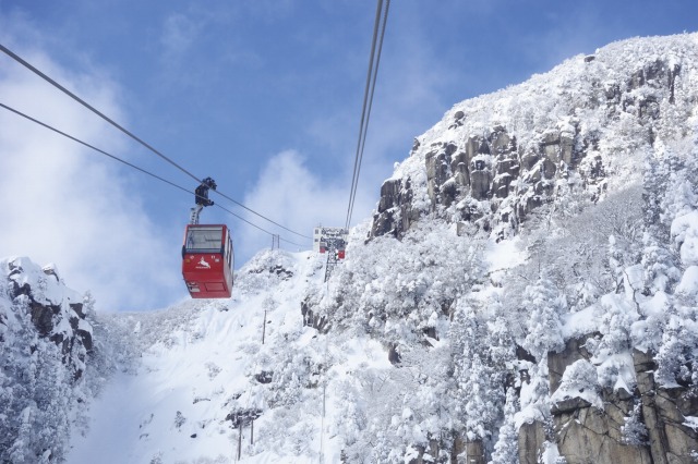 御在所岳(標高1,212ⅿ)の樹氷は、標高1000m以上で、12月下旬から3月上旬頃まで見ることができます。